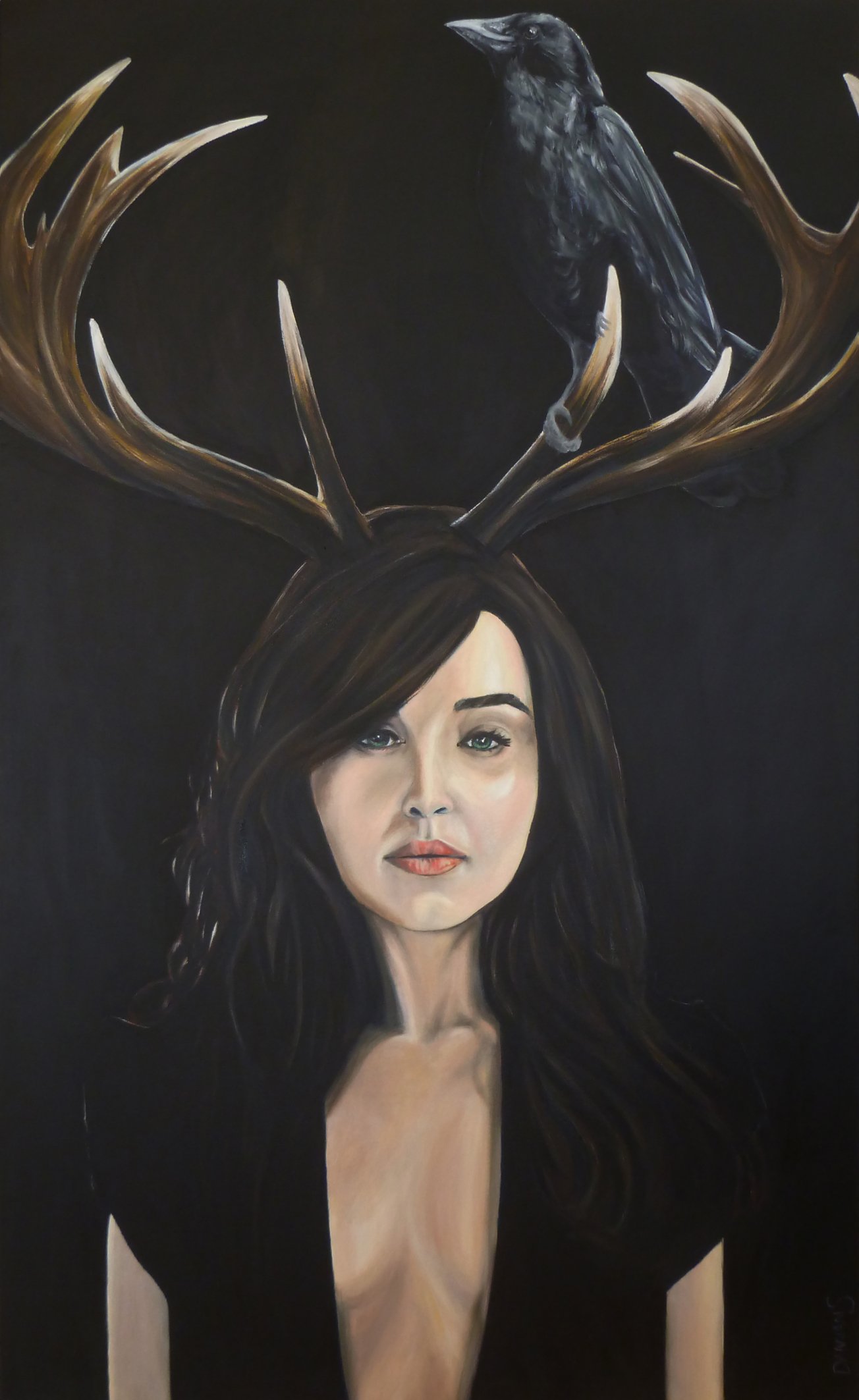 Here, in this comforting void, her form shifted. The human shell, exhausted and depleted, dissolved. Her spirit coalesced, sleek and sharp, into the form of a dark crow. It was not a flight of fear, but a homecoming. She rose, silent and sure, finding her perch upon the majestic antler crown that now adorned the silent, human vessel. These antlers, symbols of strength and wild solitude, were her throne in the quietude.